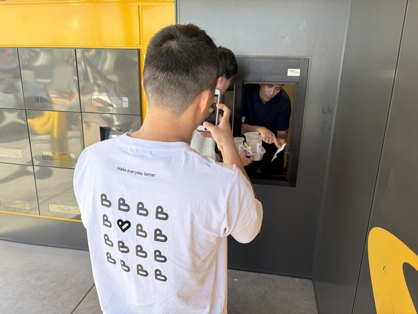 マクドナルドの“オン・ザ・ゴー”でモバイル注文品を受け取る瞬間。非対面・高速受け取りの仕組みを、参加者が実体験で理解する。
