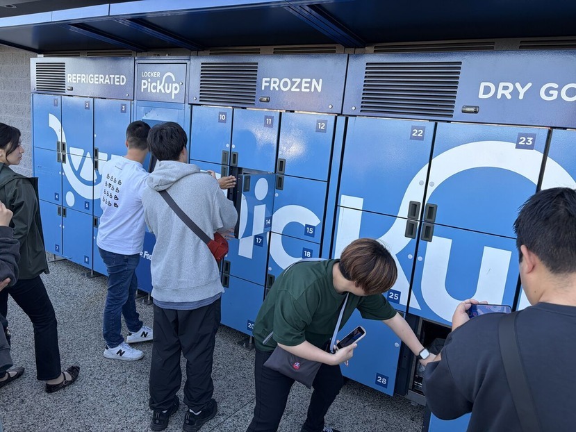 スマートロッカーでネットスーパーの商品を受け取る参加者。冷蔵・冷凍を自動管理する“非対面ピックアップ”の実力を実地で検証する。