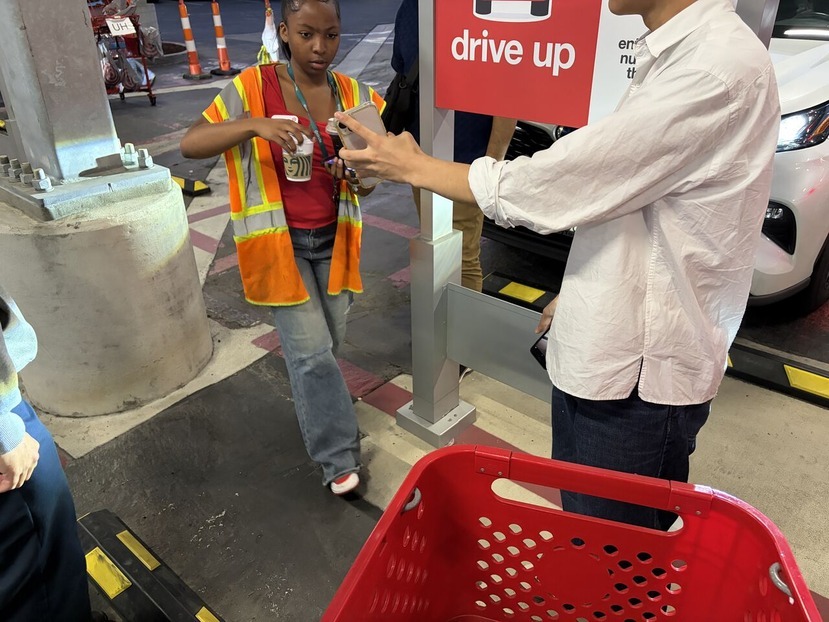 ターゲットの“ドライブアップ”で、スターバックスのモバイルオーダー商品を受け取る参加者。小売とカフェの連動が生む“究極の利便性”を体験する瞬間。