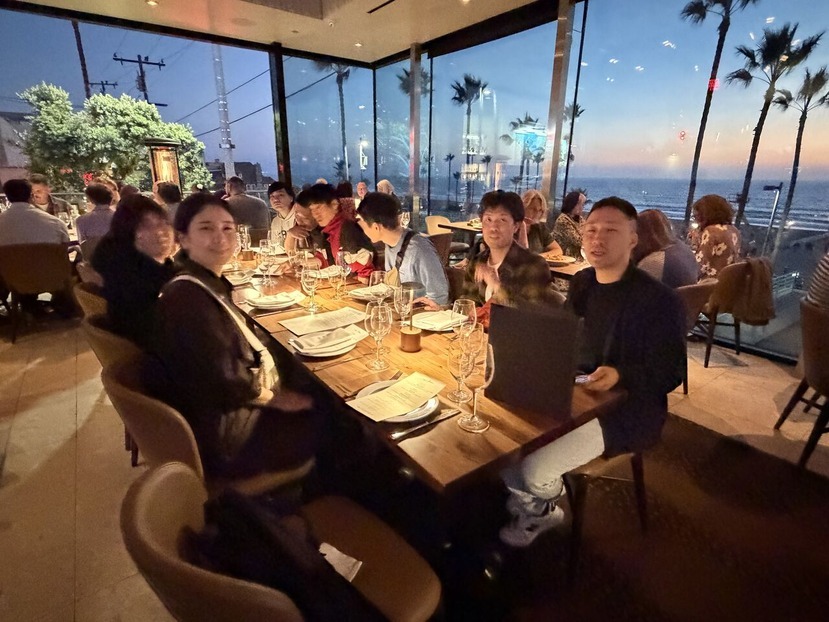 マンハッタンビーチの夕景を背に、ストランドハウスで贅沢なディナー。極上のロケーションとシーフード&ステーキ料理が、視察研修の一日を優雅に締めくくる。