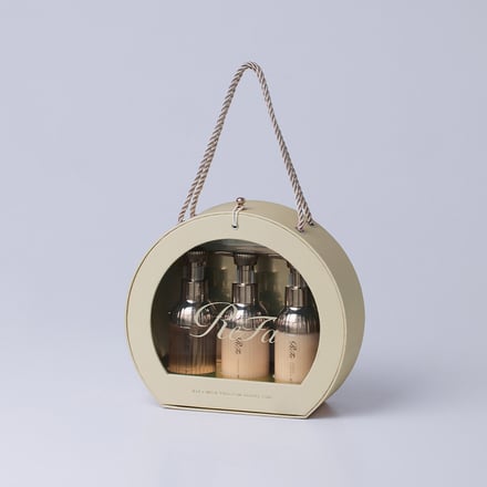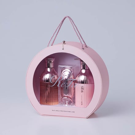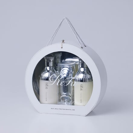 新作ギフトセットでは、同シリーズのシャンプーとトリートメントの大容量サイズにブラシとオリジナルチャームを加えた「リファミルクプロテイン ピンク ヘアケア ギフトセット」と、「リファミルクプロテイン ヘアケア ギフトセット」(各9790円)のほか、ミニサイズのシャンプーに、イン・アウトバス用それぞれのトリートメントをセットにした「リファミルクプロテイン ロイヤル ミニボトル ヘアケア ギフトセット」(8360円 ※12月発売予定)をラインナップする。