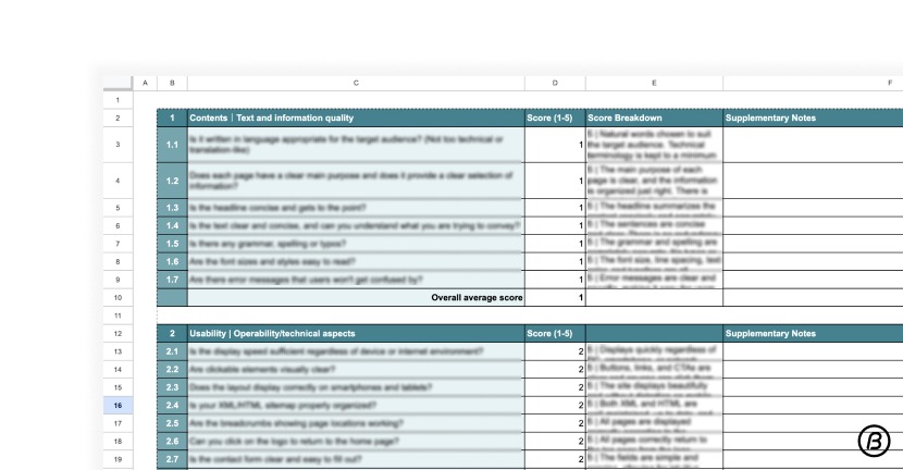 今回のAuditでは、btrax独自のRubrikを用いて各項目をスコア化した。RubrikはUX全体を網羅的に評価できる仕組みで、他のブランドにも応用可能となっている。