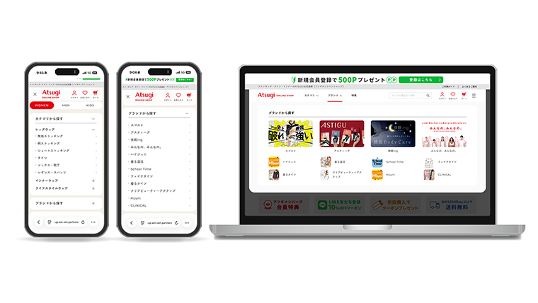 繊研plusアツギはこのほど、オンラインショップのデザインと機能を全面リニューアルした。同社は25年度から3カ年の中期経営計画でDtoC(消費者直販)事業のさらなる強化を掲げている。