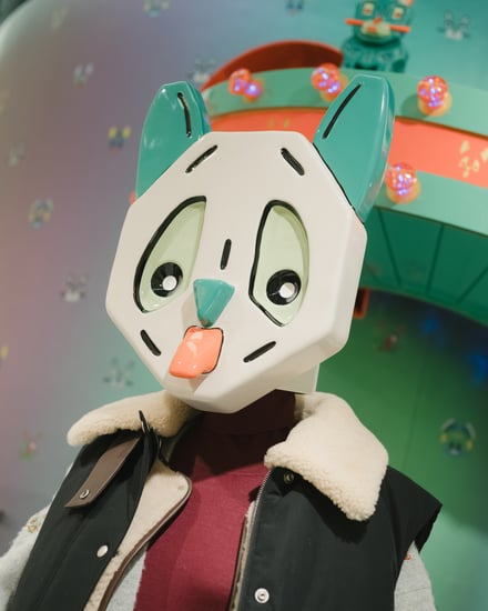ポップアップ会場は、目を引く猫のモチーフでデコレーション。鮮やかなグリーンとオレンジのコントラストで、プレイフルなホリデーのムードが演出された会場では、ウィメンズウェア、バッグ、アクセサリーを豊富に取り揃える。