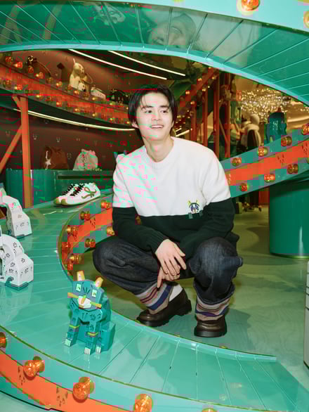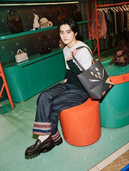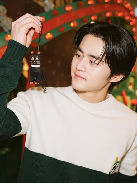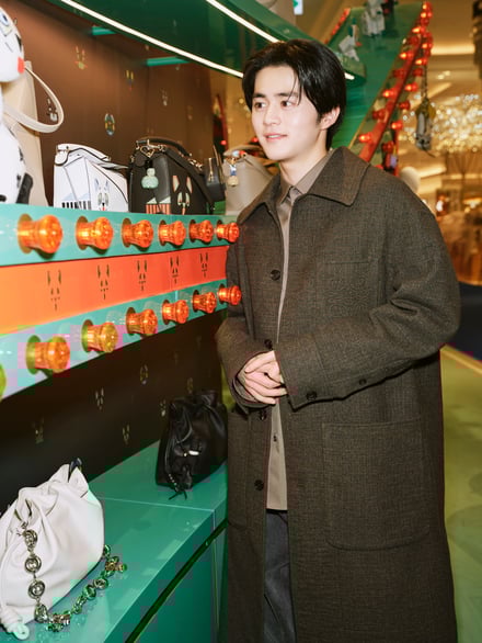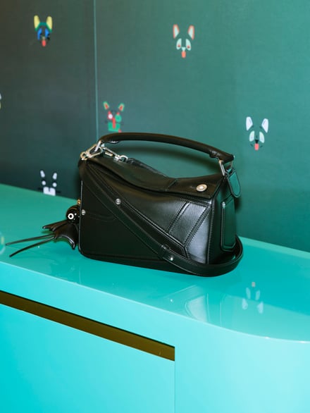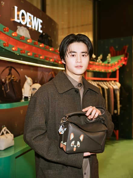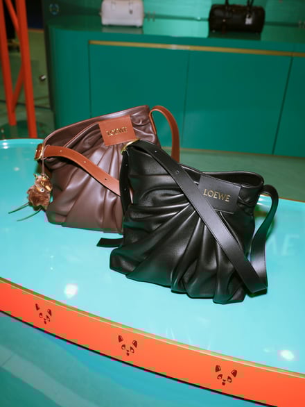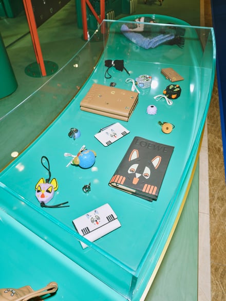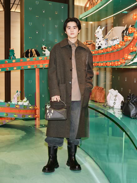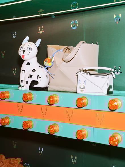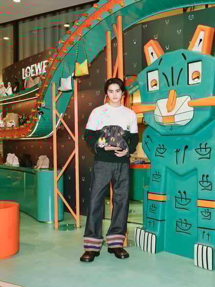 鈴鹿央士は、「テーマパークに来たような感覚で、ロエベの遊び心をたっぷりと感じられる空間でした。鮮やかな色合いが気分をふわっと軽くしてくれるようで、見ていてとても楽しかったです」とポップアップを堪能。「ロエベのクラフトマンシップには本当に惹かれます。革のパーツを縫い合わせる工程など、職人の手仕事を知るたびに、ものづくりへの深い愛情を感じます。またアートやクラフトとの結び付きも魅力的で、今回はルイス・ウェインの作品に触れられたのも貴重な体験でした。ロエベに訪れるたびに新しい学びがあります」と語った。