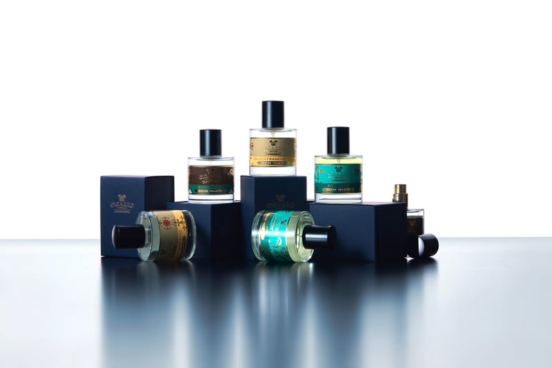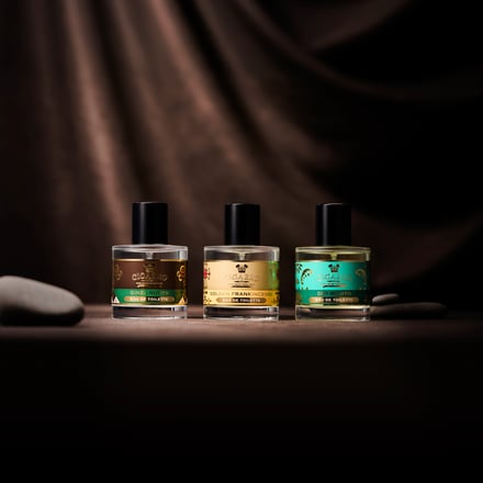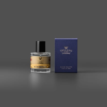 「ゴールデンフランキンセンス」は、レモンとベルガモットのきらめくような香りで幕開ける、爽快なハーバルノート。ミドルではミュゲやイリス、ローズなど優雅なフローラルが漂い、ラストに向けてフルーティなザクロとピーチが香りつつフランキンセンスとムスクが満ち足りた至福とゴージャスな魅力を添える。