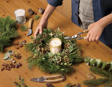 さらに、隣接するディプティック表参道店との連動キャンペーンも実施。会期中、同店で2万9700円以上の購入者を対象に、コレクションを象徴するゴールドの松ぼっくりを施したリースを、数量限定でプレゼントする。