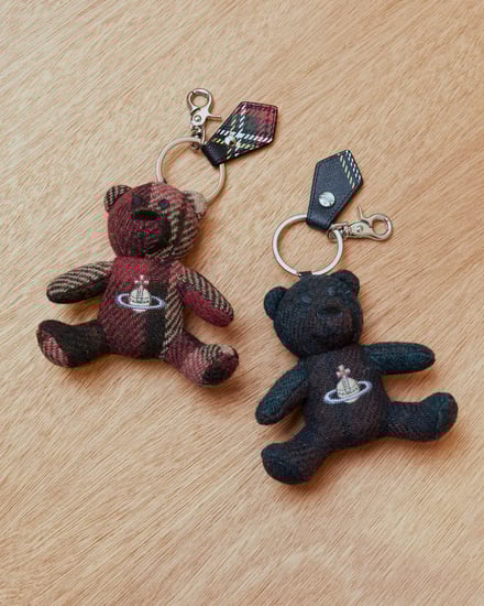 ホリデーギフトにフィーチャーしたアイテムとして、アーカイヴから復刻したハリスツイードのタータンチェック柄「HAZEL TREASURE ハンドバッグ」(15万9500円)がライトチェックとダークチェックの2カラーで登場。両サイドには"パンクポケット"を配し、アクセントとしてオーブが刻印されたロゴバックルが特徴で、ショルダーバッグやクラッチバッグとしても使うことができる。同柄で展開する「TEDDY BEAR キーホルダー」(各6万3800円)は、中央にオーブの刺繍が施されており、バッグチャームとして楽しめる。
