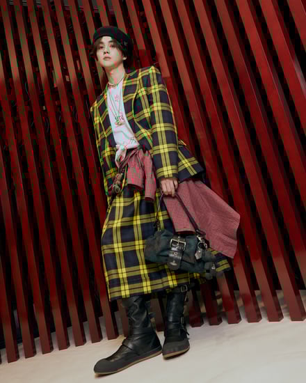 FASHIONSNAPでは、今年9月にリニューアルオープンしたヴィヴィアン・ウエストウッド 青山店を舞台に、アーティストで俳優の吉野北人を起用したショート動画を制作。ヴィヴィアン・ウエストウッドらしいイエローチェックのセットアップと、シアリングコートにデニム、さらに大胆なキスマークプリントのシャツを合わせた2025年秋冬コレクションのホリデースタイル2ルックをまとい、クローズ後の店内でギフトを探すストーリー仕立てのショート動画をSNSで公開している。