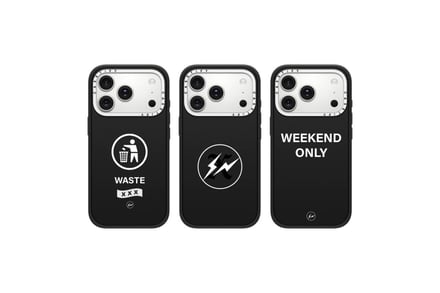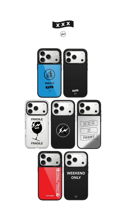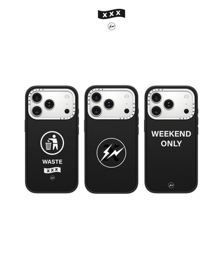 ゴミ箱をモチーフにした新デザイン「WASTE」は、藤原と宮崎がiPhone 17 Pro、Pro Maxの新たなカメラリング箇所に対して放った「ゴミ箱みたい」という一言をきっかけに誕生した、iPhone 17 ProおよびPro Maxサイズのみを揃えるオリジナルデザイン。このほか、東京・原宿で週末のみオープンする「WEEKEND」ストアのみで取り扱う限定デザインも登場する。