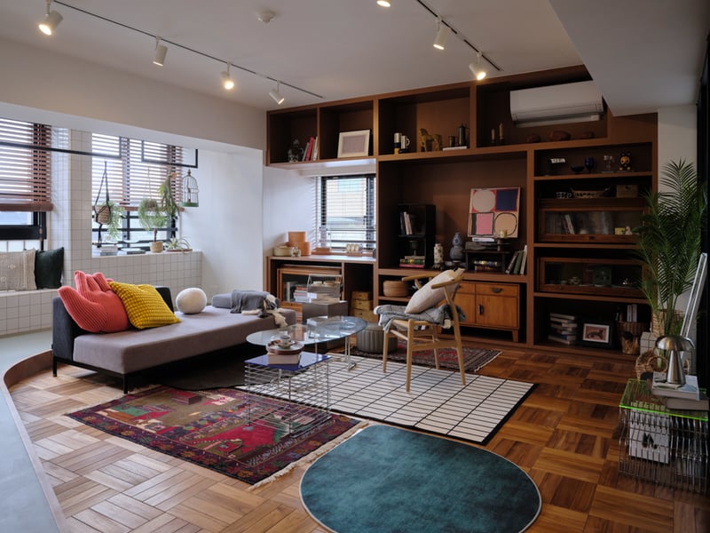 今回発表した東急世田谷線「世田谷」駅徒歩3分のマンション「コスモ世田谷」の一室をリノベーションした物件では、アンティークの什器を埋め込んだ飾り棚を家の中心的存在とし、見せる収納と見せない収納を巧みに組み合わせることで、ものに囲まれながらも体感的な広さを残した空間に仕上げるという。
