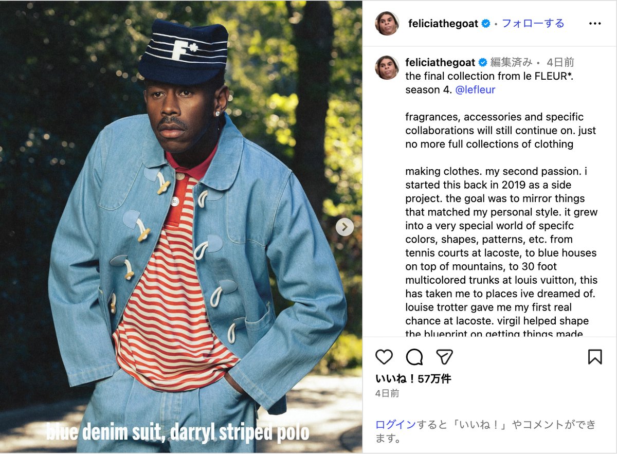 タイラー・ザ・クリエーター(Tyler,The Creator)が、自身のブランド「ラ フレール(le FLEUR*)」のアパレルコレクションを終了すると発表した。現在、公式サイトでラストコレクションである「シーズン4」を展開している。