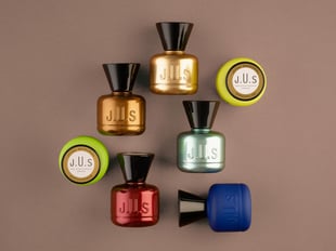 それぞれのボトルデザインには、上から下にかけて徐々に透明度を増していくグラデーションガラスを使用している。グッチを象徴するグリーンとレッドに彩り、洗練されたバランス感を表現し、香りをより引き立てている。