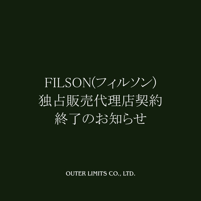 「ナイジェル ケーボン(Nigel Cabourn)」や「ベルスタッフ(BELSTAFF)」などの日本総代理店であるアウターリミッツ(OUTER LIMITS)が、アメリカ発のアウトドアブランド「フィルソン(FILSON)」の日本国内における独占販売代理店契約を、12月31日をもって終了することを発表した。