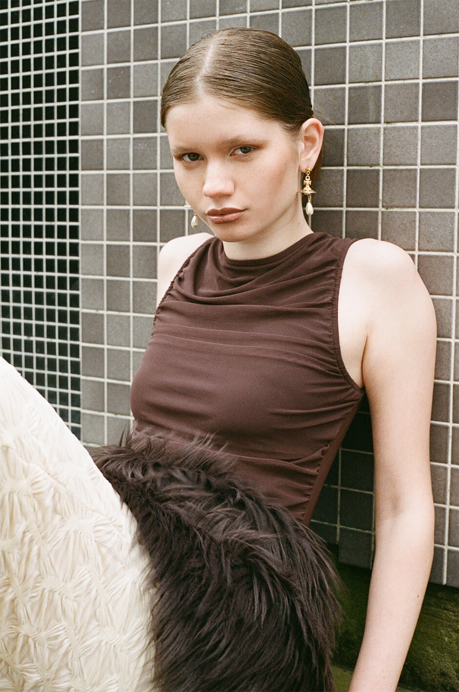 top and skirt by RUMPLE, earrings by VIVIENNE WESTWOOD
