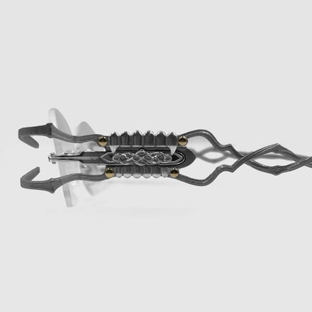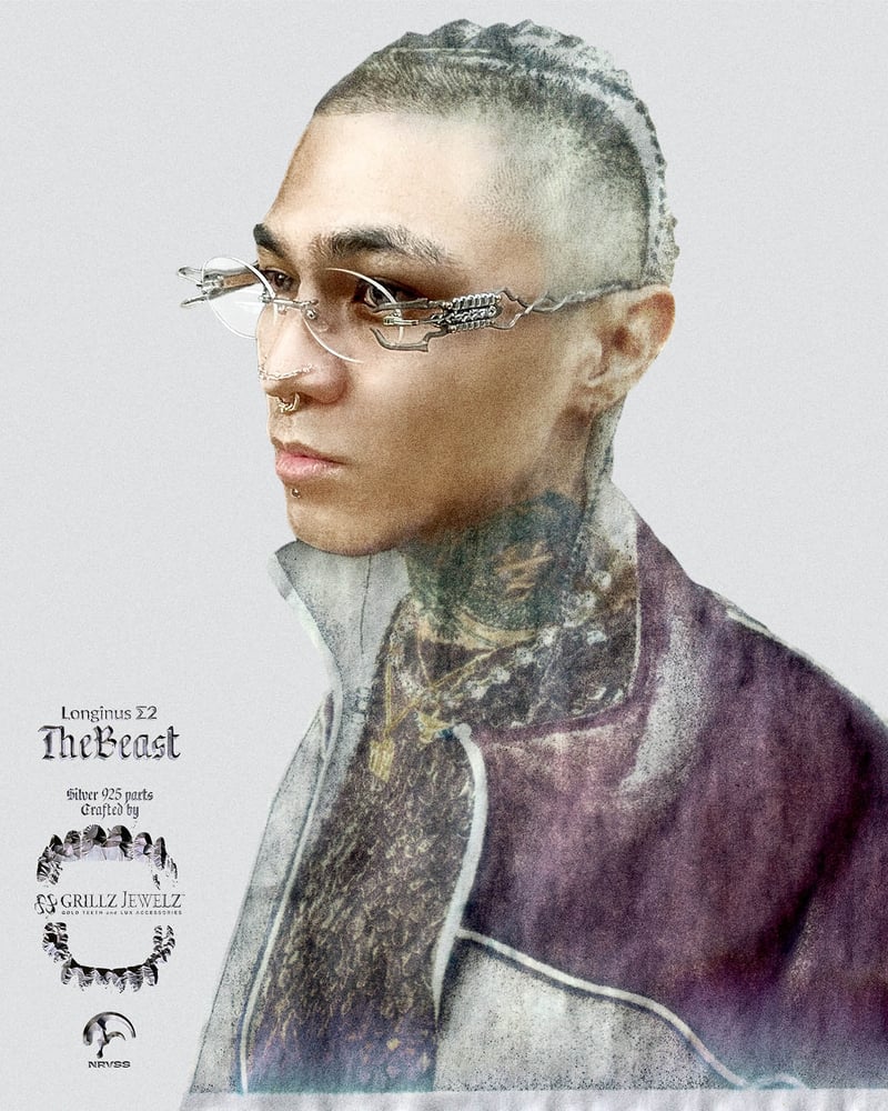 グリルズ ジュエルズとのコラボでは、ナーバスの定番モデル「Longinus」をベースに、「暴走」をテーマに再構築したシルバー925製のテンプルを製作。ヴィジュアルにはOZworldを起用した。価格は5万9400円。