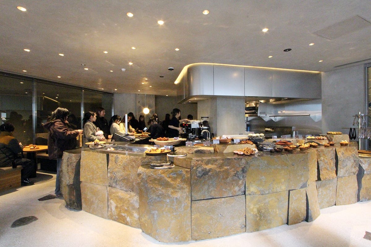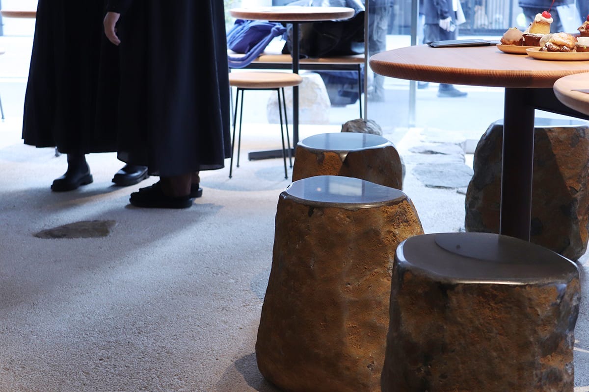 アマムダコタンはもともと“石の町にある小さなパン屋さん”をコンセプトとしており、カフェアンドベイクはその世界観も継承している。店内は石の素材をメインとした作り。その美しさに思わず見惚れてしまう。