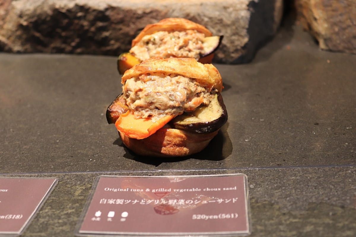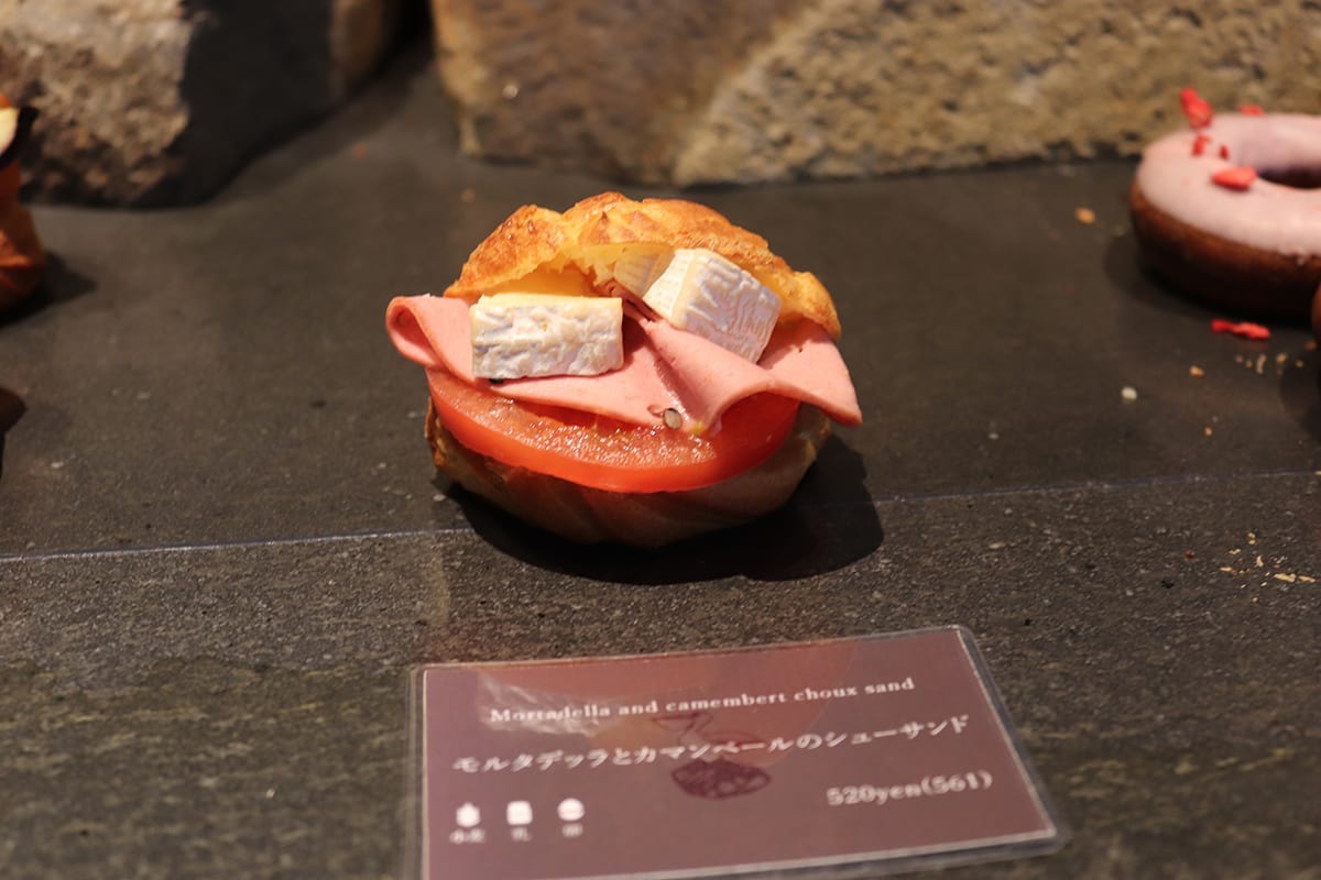 お惣菜系も充実。オリジナル生地のシュークルーラーにサンドした、マリトッツォの進化系といった具合。具材とシュークルーラーの相性もバッチリで絶品だった。