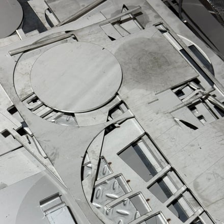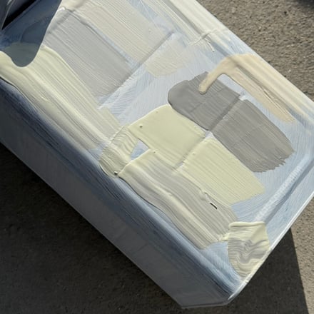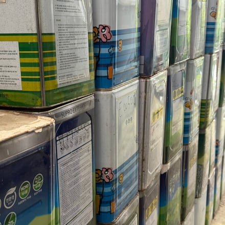 今回のポップアップは、2号店と同じくDRAWERSの小倉寛之氏が設計を担当。資源を無駄にしない現地の人々の姿勢からインスピレーションを得て、「借りて返す、そして捨てない」をモットーとし、内装には、行き場をなくした木材や、型抜き後の鋼材、そして、残塗料の入った一斗缶など、韓国の街で発見した廃棄物を内装に取り入れた。