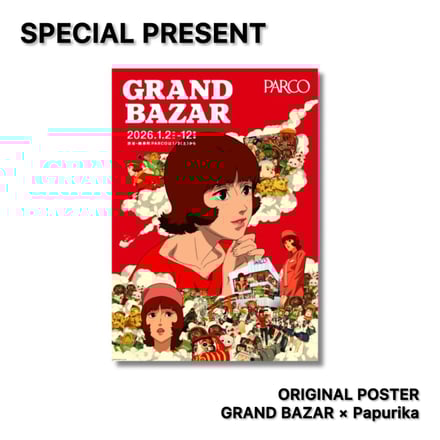 PARCO公式Xまたは対象店舗Xをフォローし、対象の投稿をリポスト+映画「パプリカ」への愛をコメントした方の中から抽選で全国計30名様に「グランバザールキーヴィジュアルポスター(非売品)」をプレゼント。
