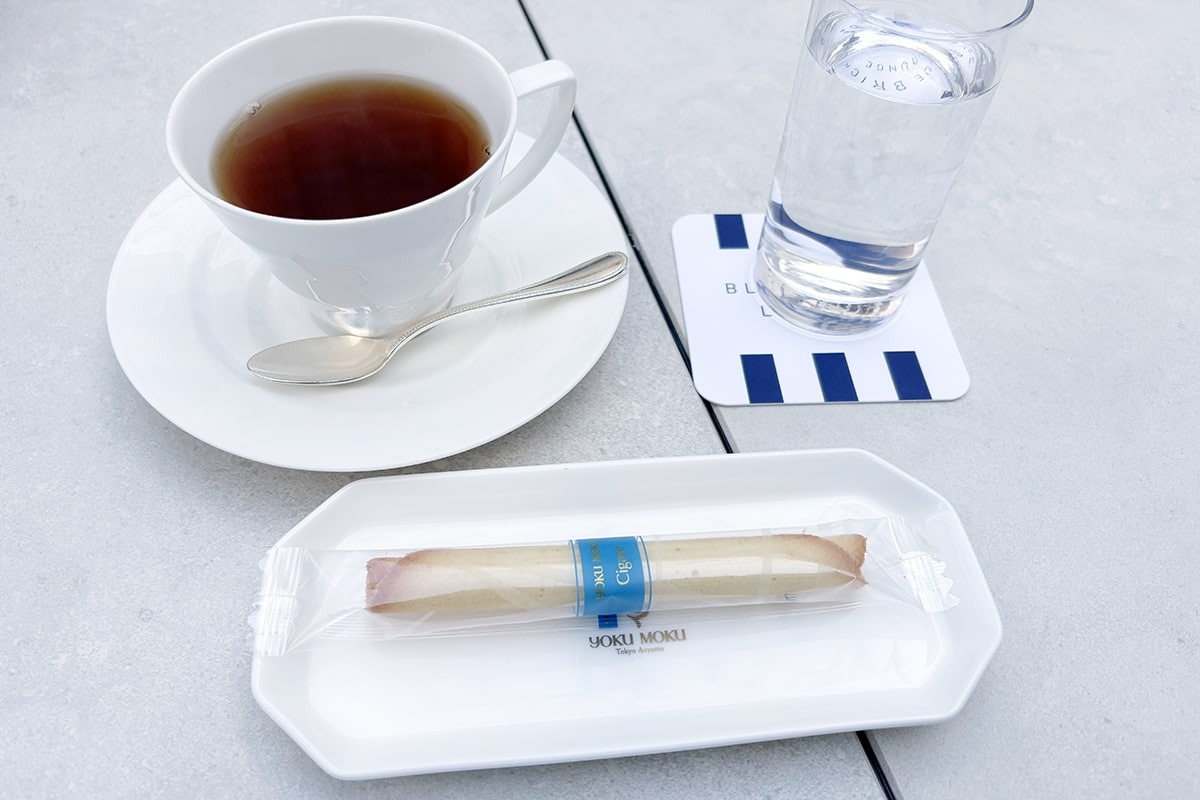 ヨックモックといえばお菓子やスイーツの印象が強いけれど、BLUE BRICK LOUNGEにはランチセット・フードメニューが豊富にラインナップ。せっかくなので平日限定のランチプセットを注文することにした。青山らしいな高級感のある空間にちょっとだけドキドキしながら待っていると、ヨックモックの代名詞「シガール(R)」が!