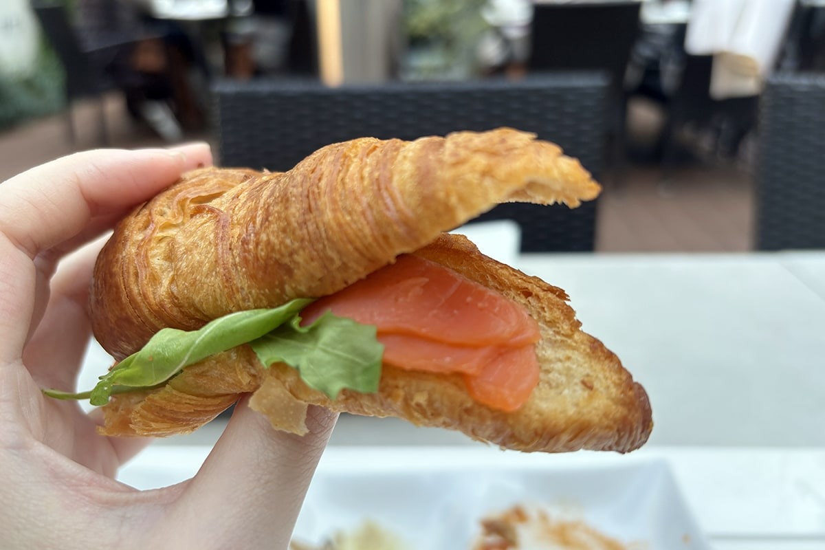 もう一つはクロワッサン × サーモンというもう絶対においしい組み合わせ。柚子がアクセントになっているのと、バターが香るふんわりとしたクロワッサンがほのかに甘みがあって、相性抜群のおいしさだ。