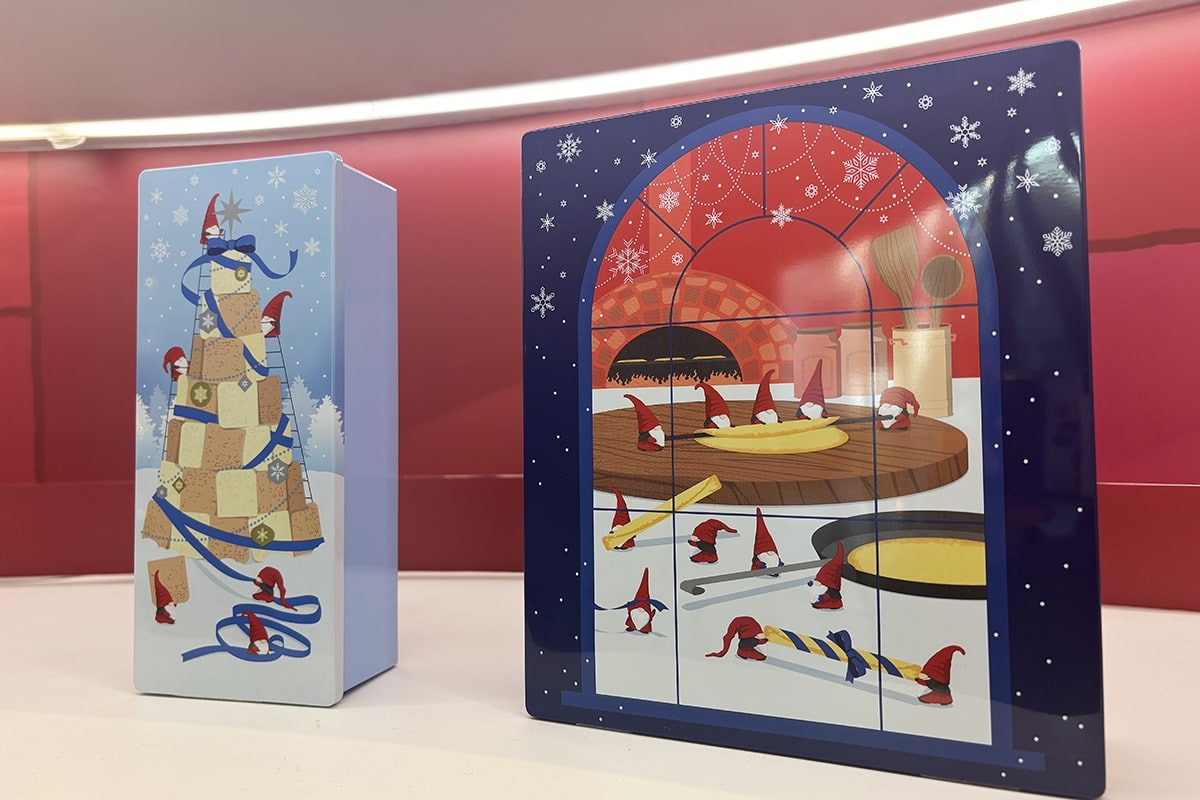 食後は、隣のショップで買い物するのもおすすめ。ホリデーシーズンは、シガール(R)をはじめとしたクッキー缶がクリスマス仕様に!青山のランドマークとして愛されてきたヨックモック青山本店で、優雅なティータイムを楽しんでみて。
