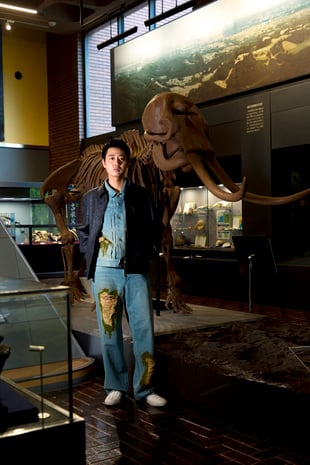 「コケシリーズ」は、SF小説「FOUNDATION」から着想を得た2025年秋冬コレクションを象徴するアイテム。デザイナー自身のウェザリング加工の技術やジオラマ作成の経験を活かして、長い間放置されコケが生えたような加工を生地に施すことで、デニムパンツやウエスタンセットアップにSFの世界観を落とし込んだ。