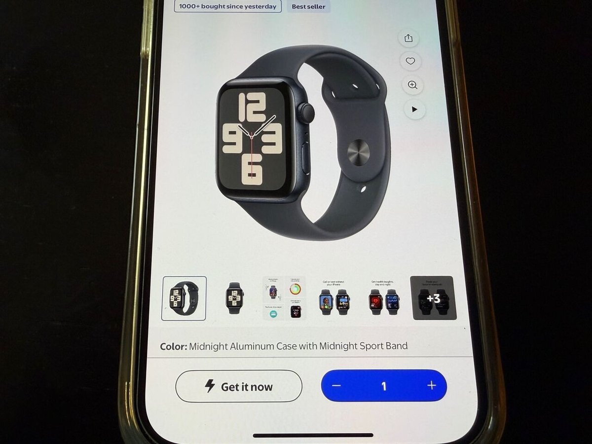 ウォルマート・アプリの商品ページに表示される「ゲット・イット・ナウ(Get it Now)」ボタン。Apple Watch SE2のような高単価商品(現在セールで129ドル!)でも、“今すぐ手に入る”スピードを前提に購入判断を促す──ウォルマートがアプリ主導で仕掛ける即時性の象徴だ。