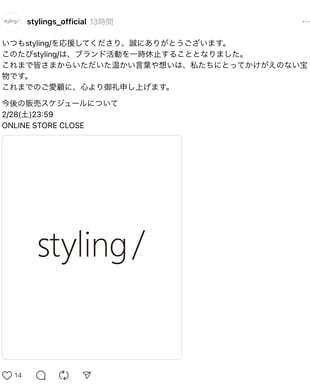ブランドの休止にあたり、12月26日12時から12月31日23時59分まで、2025年秋冬アイテムの会員限定先行セールを実施。期間中は新作を全品30%オフで用意する。なお、現行の商品は引き続きONWARD CROSSETで販売を行う。