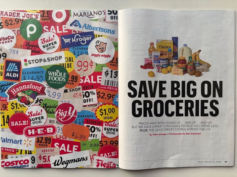 コンシューマーレポート最新号の特集「食料品で大きく節約せよ(SAVE BIG ON GROCERIES)」。同じ食料品でも、どのスーパーを選ぶかで価格が大きく変わる──インフレ時代のアメリカでは、店選びそのものが最大の節約術になっている。