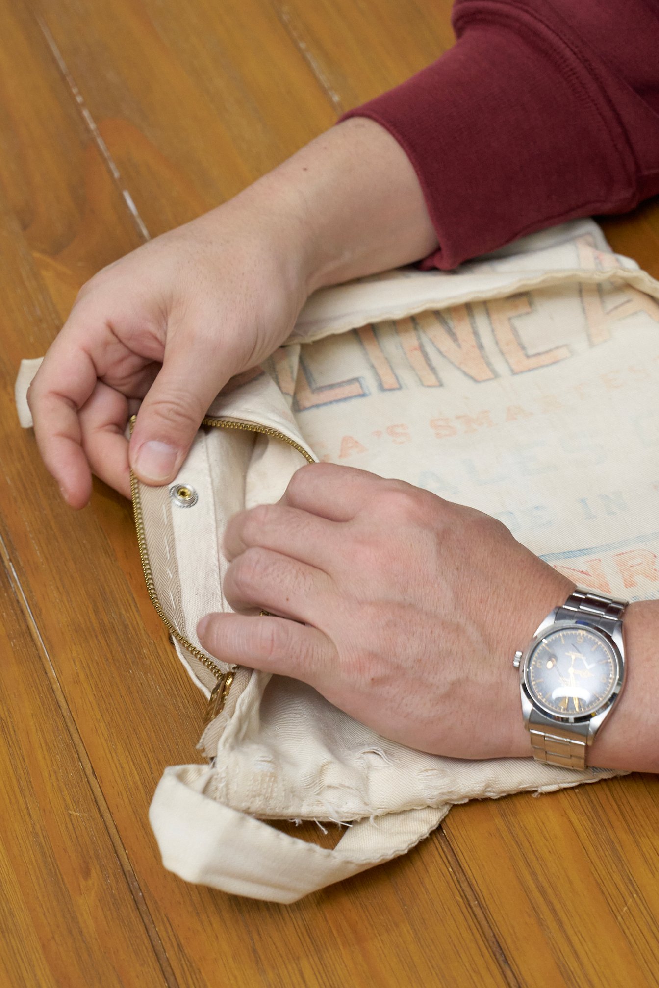森田:そうです。手縫いで付けました。作る時にファスナーを色々と調べていたら、タロンジップが意外と新品で売っていることに気がついて。これはいいなと思って何個か買って、1番なじみのいいものを付けました。