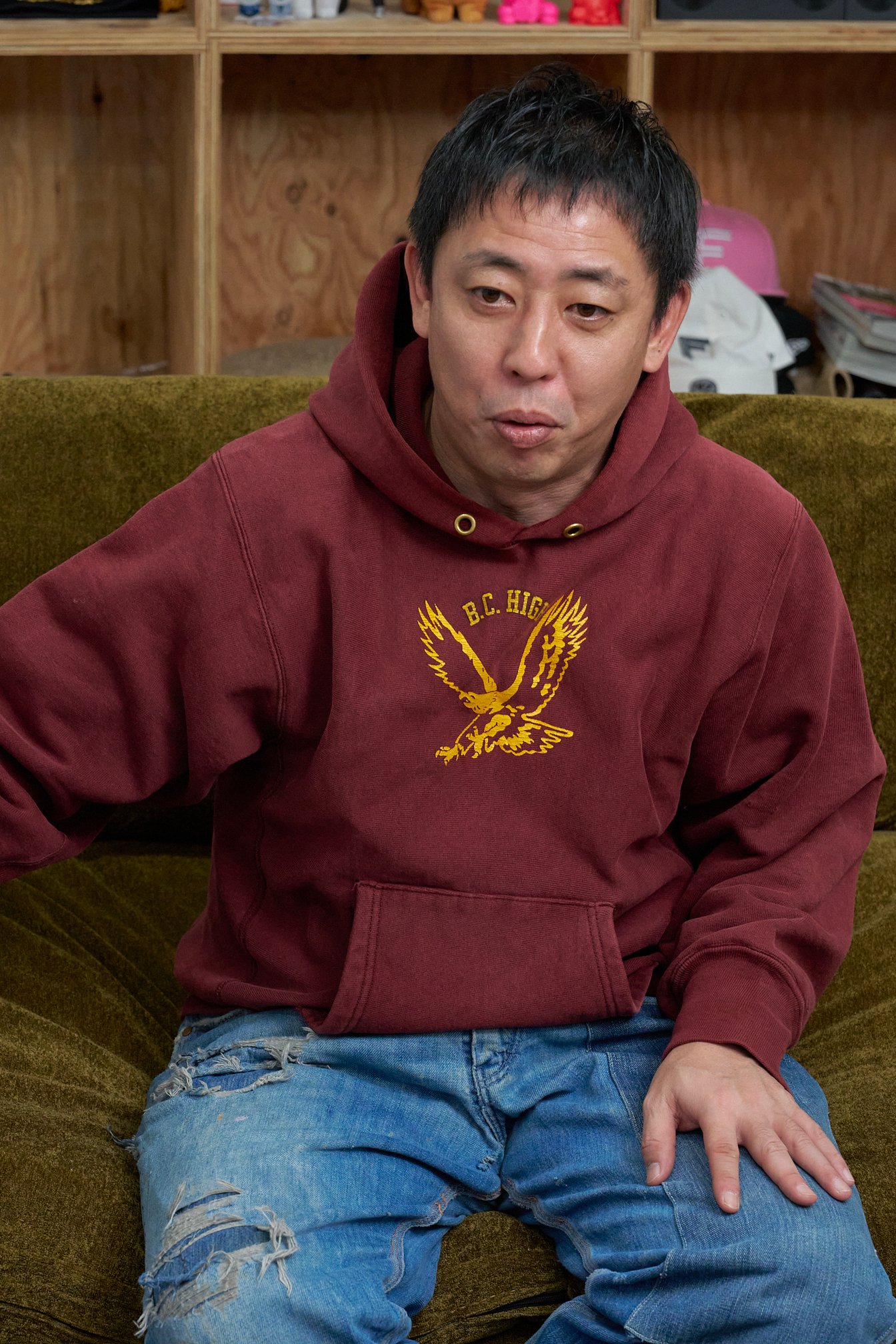 森田:高校生の頃からスケーターファッションが好きで、スウェットパンツはいてましたね。「プレイボーイ(PLAYBOY)」はもちろん、「パウエル ペラルタ(Powell Peralta)」や「スラッシャー(THRASHER)」とか、当時は1、2年に1着買えるかどうかでしたね。何年か前に、パウエル ペラルタが復刻して「俺が着ていたやつだ!」と嬉しくなって買いました。