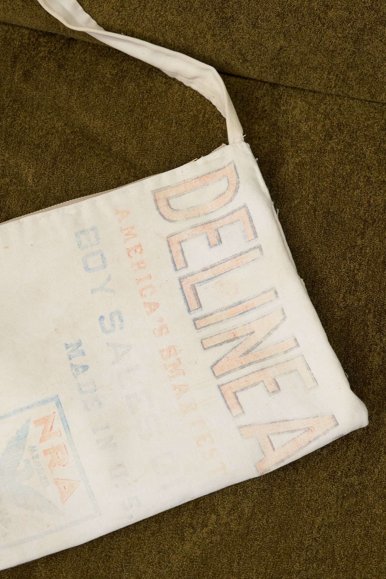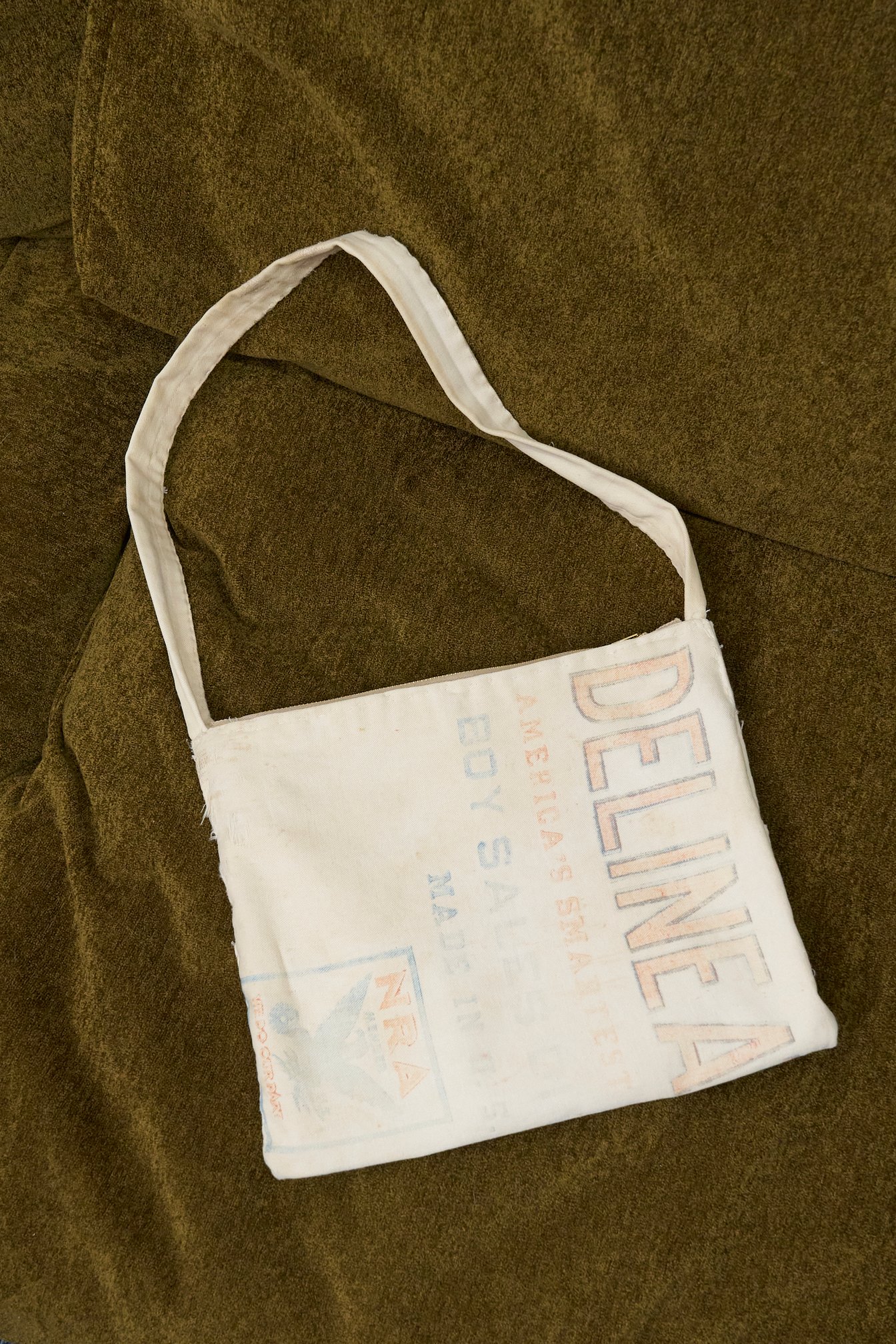 森田:実はこれ、元のニュースペーパーバッグの紐を付け替えてるんですよ。そんなに太いものじゃなかったので折ったりして。タタキ(補修跡)もあるので誰かが昔に使っていたということなんですけど、それがまたいい味出してるんですよね。柄は何個かニュースペーパーバッグを買って、布との相性を試して選びました。後はポケットが欲しくなったので追加しましたね。