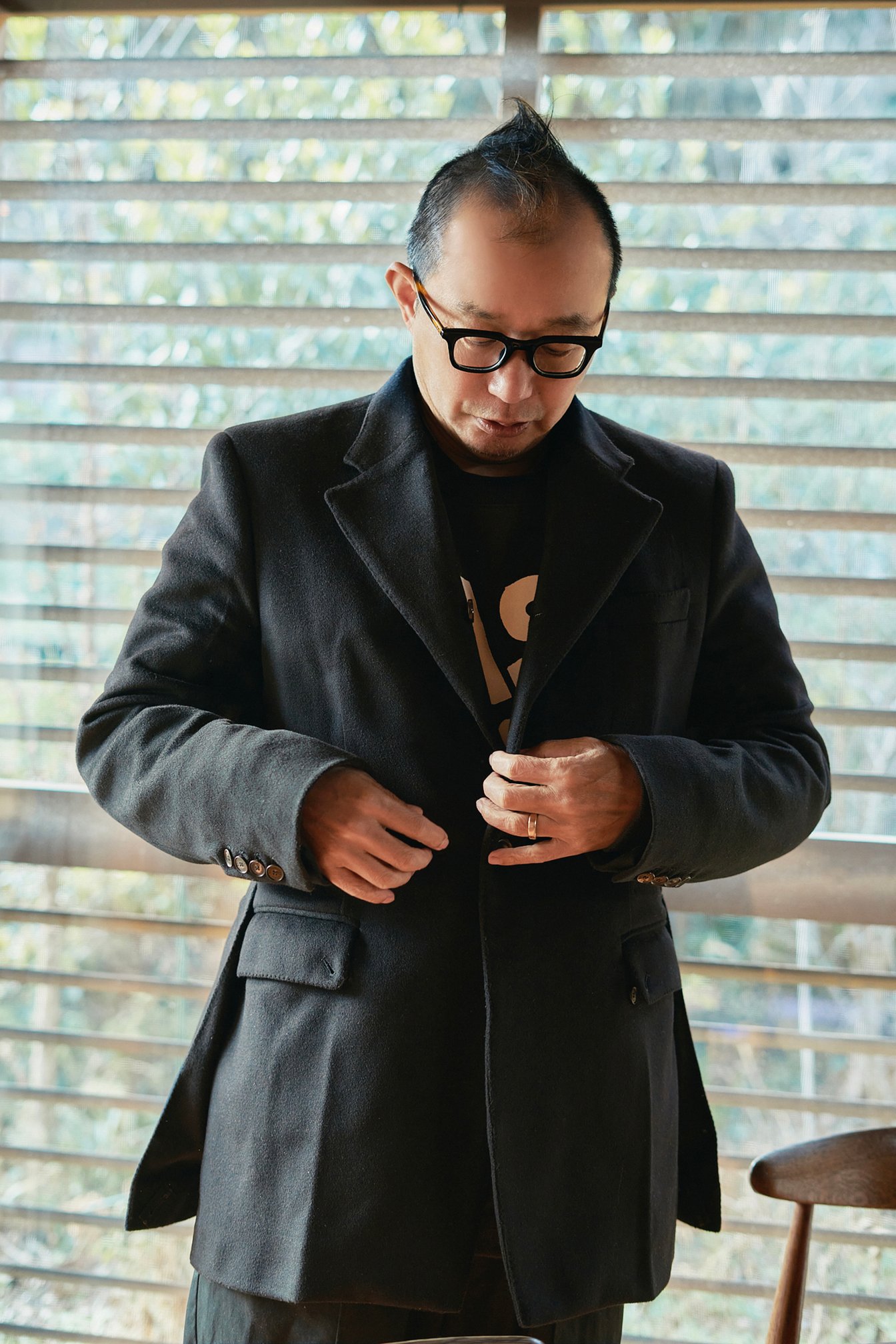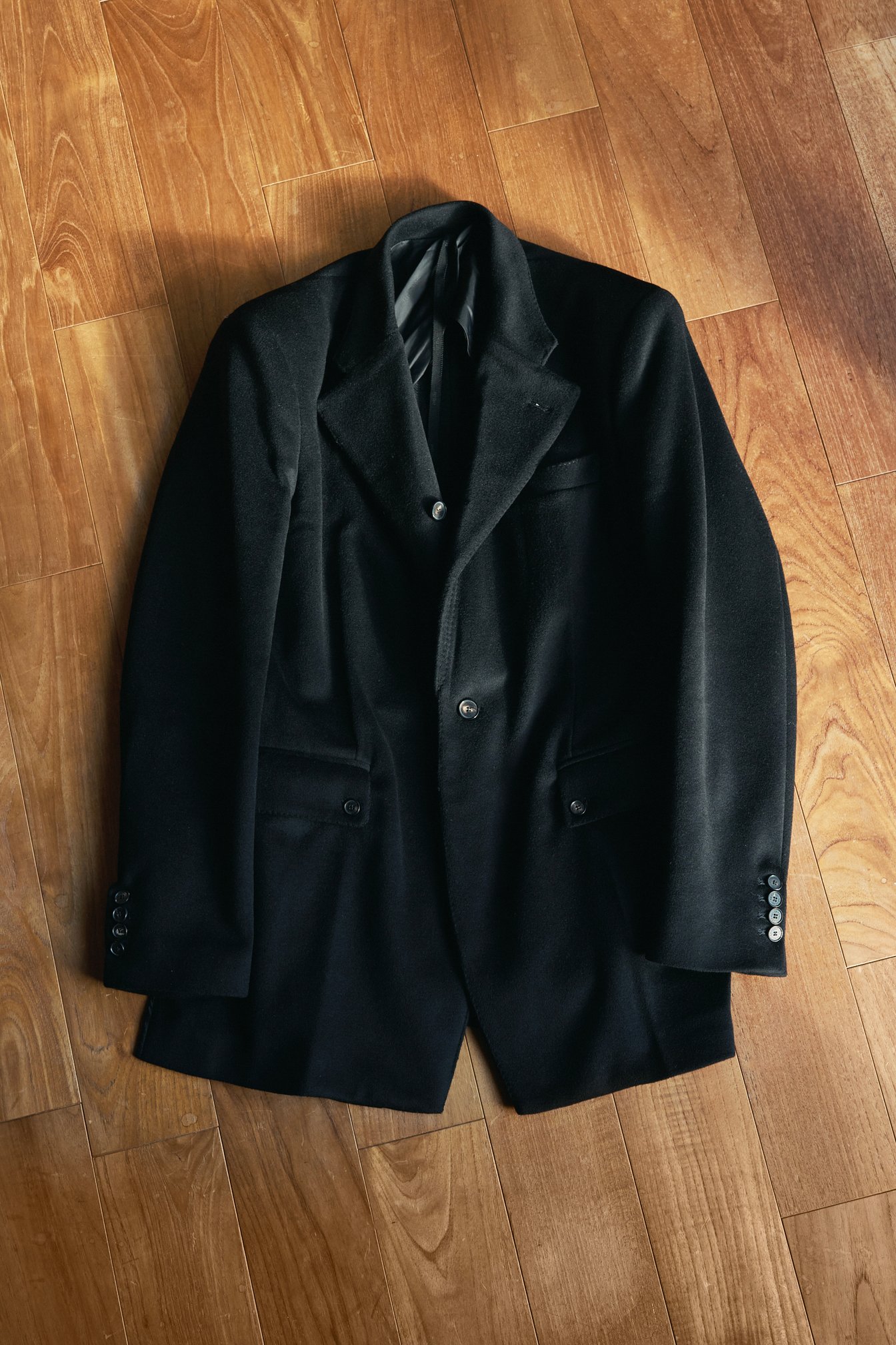 小笠原拓郎(以下、小笠原):通常はギャバジンの生地で作られている型を、カシミヤ100%で特別に仕立てた1着です。悟史君から「これをカシミヤで作ってみますか」と提案があり実現しました。サイズは3で、パターンは販売されているトラベルジャケットと同じです。通常ラインと違う生産ルートになったので工場の上がりが遅く、6月予定だったのが、最終的に10月中旬に受け取ることができました。