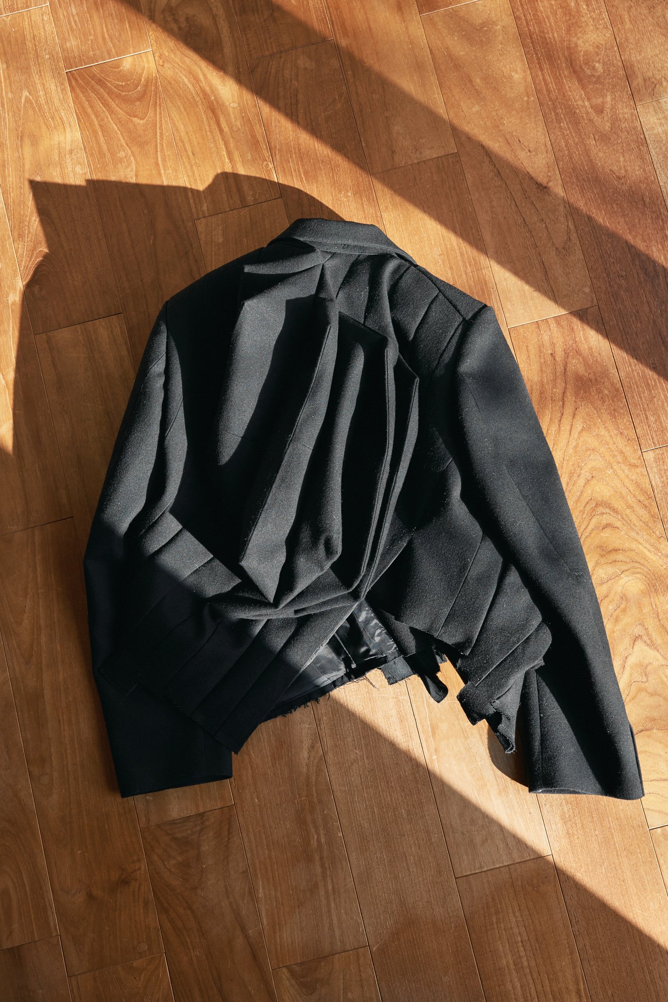 小笠原:このままでいいのかなって思った時があったんですよ。常に新しいものを追い求めるコム デ ギャルソンが、服の概念の外にあるものを作らないと新しいものができないと考えるのはわかりますが、ショーピースを美術館が買って展示する、顧客はショーピースのエッセンスを着易くした服を買うというビジネスが良いことなのだろうかという疑問がありました。コム デ ギャルソンは、どんなにアヴァンギャルドな服を作っても、それを実際に売るということにプライドを持っている企業だったので。服の概念の外に目を向けたのは8シーズンくらいあったと思いますが、そういう意味で2025年秋冬コレクションは何年ぶりかに服の概念をもう一回追求していくと感じられて。「コム デ ギャルソン オム プリュス(COMME des GARÇONS HOMME PLUS)」の2025年秋冬コレクションもとても良くて、欲しいものはあったんだけど、やっぱりこのジャケットと比べた時に、自分にとってはこちらの方が意味があったんですよね。