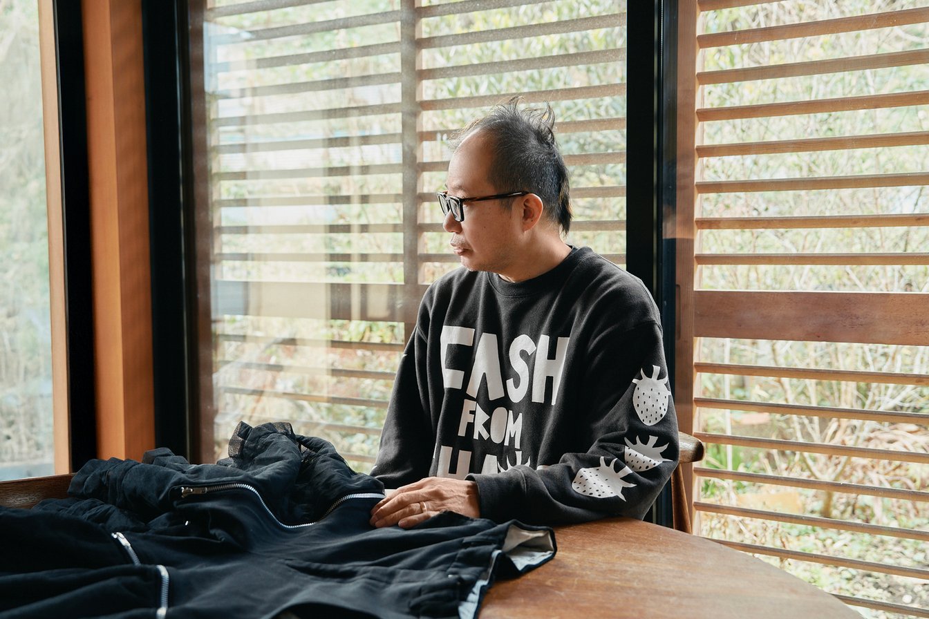 小笠原:彼はプランニングがしっかりしていますよね。ブランドとして次に何をするべきかをちゃんと考えて、ビジネスをクリエイションしている。それは悟史君のすごい才能だと思います。香水を出し、ANAのユニフォームを手掛けるなど、着実に一歩一歩ビジネスを進めている。プロダクトクオリティもすごく高いですし、気候や着方といった今の時代の捉え方がうまい。暑い現代でも快適に過ごせるような提案や、旅での使い勝手、家族で共有できることまで考えて作られているところが魅力でしょうね。今年買ったこのスウェットは彼曰く、LVMHの一押しのポルトガルのジャージー工場で作られており、サイドのジップを外すとゼッケンのようにも着られるんですよ。