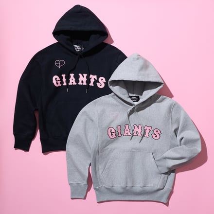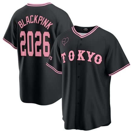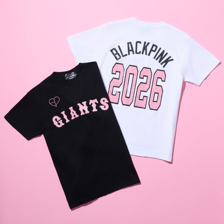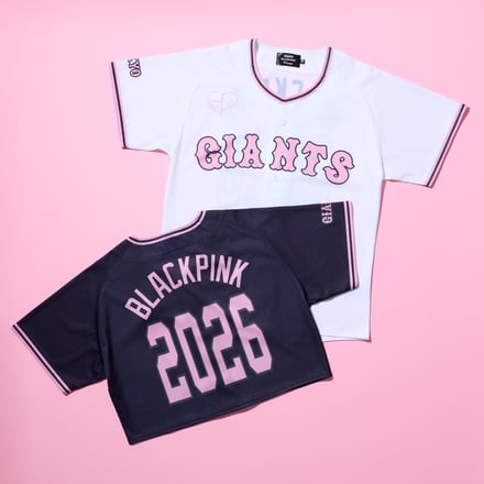 コラボでは、ブラックピンクのシグネチャーカラーである“ブラック × ピンク”をユニフォームやTシャツ、マフラータオルといったグッズに落とし込んでデザイン。読売ジャイアンツとのコラボからは、黒地に「TOKYO」、白地に「GIANTS」のワードマークをあしらった特別デザインのユニフォームの通常タイプ(2色、1万3000円)とクロップドタイプ(2色、1万1000円)が登場するほか、Tシャツ(2色、5900円)やロゴフーディー(2色、9900円)、ボール型キーホルダー(1600円)など全11種をラインナップする。
