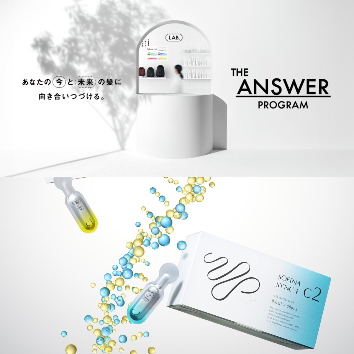 一方、ヘアケアブランド「ジアンサー(THE ANSWER)」からは、花王初のサブスクリプション型ヘアケアサービス、ジアンサー プログラムを始動。顔と頭皮の皮脂RNA発現パターンの類似性が明らかになったことから、100年にわたるヘアケア研究と最新の皮脂RNA研究の成果を活用し、一人ひとりの頭皮・髪の状態に合わせたヘアケアプランを継続的に提案する。パーソナライズの基礎となる頭皮・髪の解析にはLINEの専用アプリを使用。画像撮影とセルフチェックを組み合わせ、全16タイプのヘアタイプを判定する。