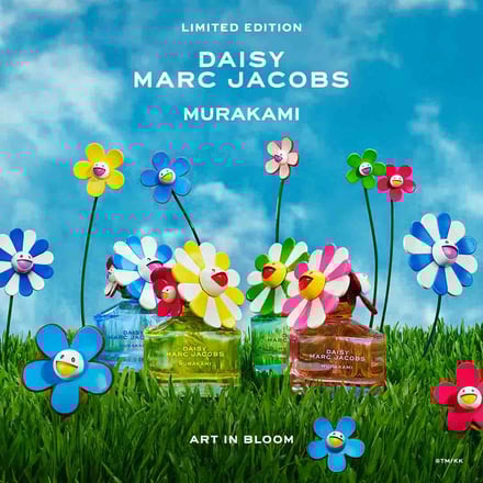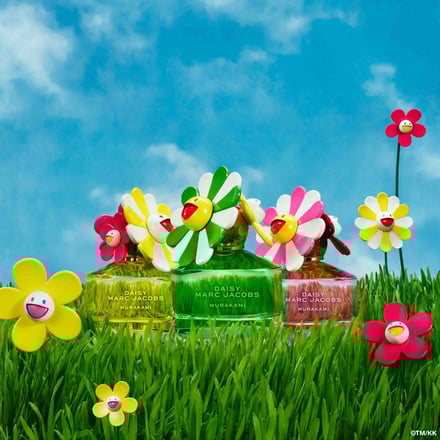 マーク ジェイコブス デイジー ムラカミ オードパルファムは、両者の長年にわたるクリエイティブパートナーシップを記念。マーク ジェイコブスを代表するデイジーの香りに、村上隆のポップで鮮やかな世界観を融合したというボトルデザインは、クラシックなデイジーキャップに、村上隆のシグネチャーであるフラワーモチーフを取り入れた。