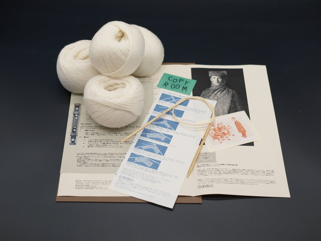 三菱一号館美術館 Espace 1894では、同企画の第1弾として、歴史的な編み図の展示「ニッツ・アンド・レビュー/コピールーム(Knits & Review / COPYROOM)」を開催する。会場では、戦時下のアメリカ・イギリス・カナダで市民が戦地の兵士や負傷者のために編んでいた衣服の図案を、現行の糸や道具で再現できるようにした編み図を展示。来場者は、会場に設置されたコピー機を用いて、編み図を自由にプリントし持ち帰ることができる。