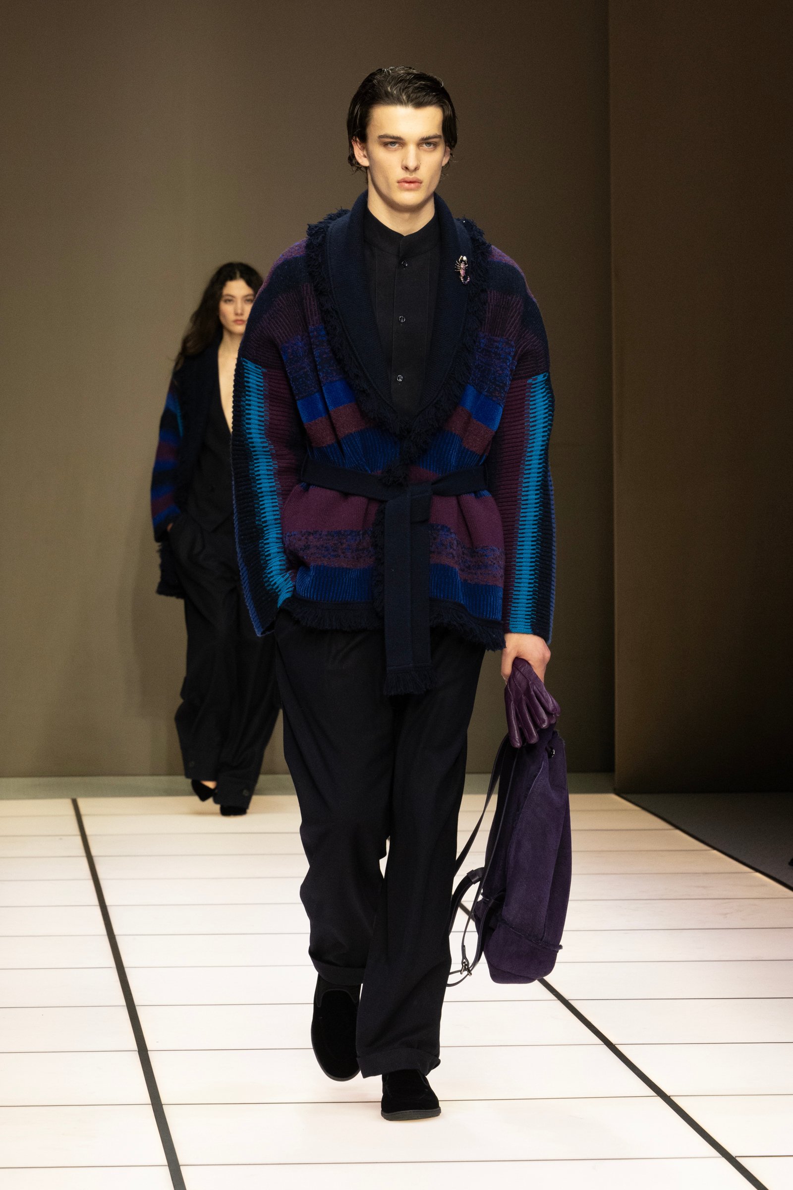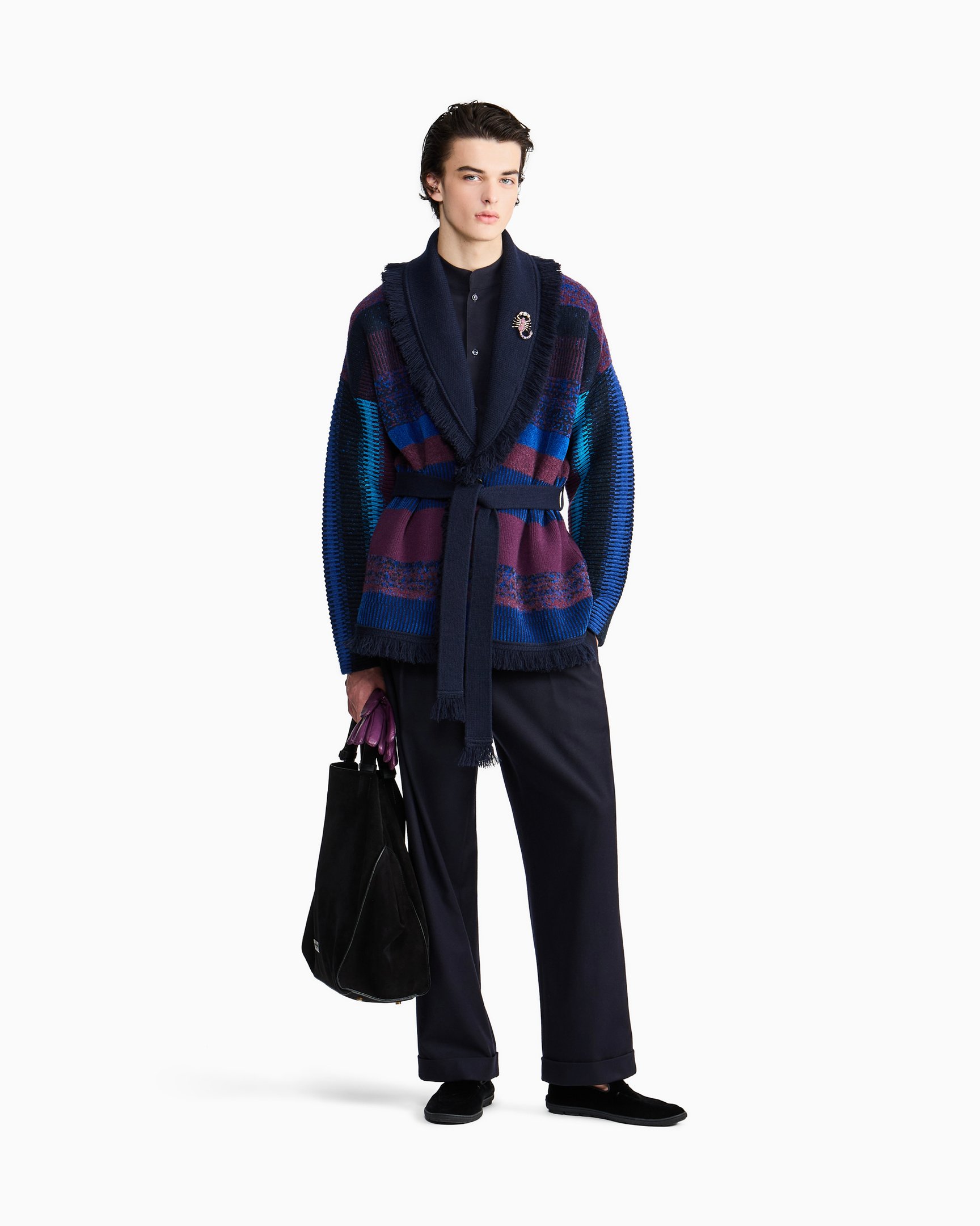 また、カルロッタ・オッディ(Carlotta Oddi)とニコロ・オッディ(Nicolo Oddi)の兄妹が手掛けるニットブランド「アラヌイ(Alanui)」とのコラボレーション「Giorgio Armani for Alanui」を発表。アラヌイのシグネチャーであるフリンジ付きカーディガンをアルマーニのレンズを通して再解釈し、抽象的なジャカードモチーフで表現したアイテムが登場した。同コラボアイテムは2月下旬に販売される予定だ。