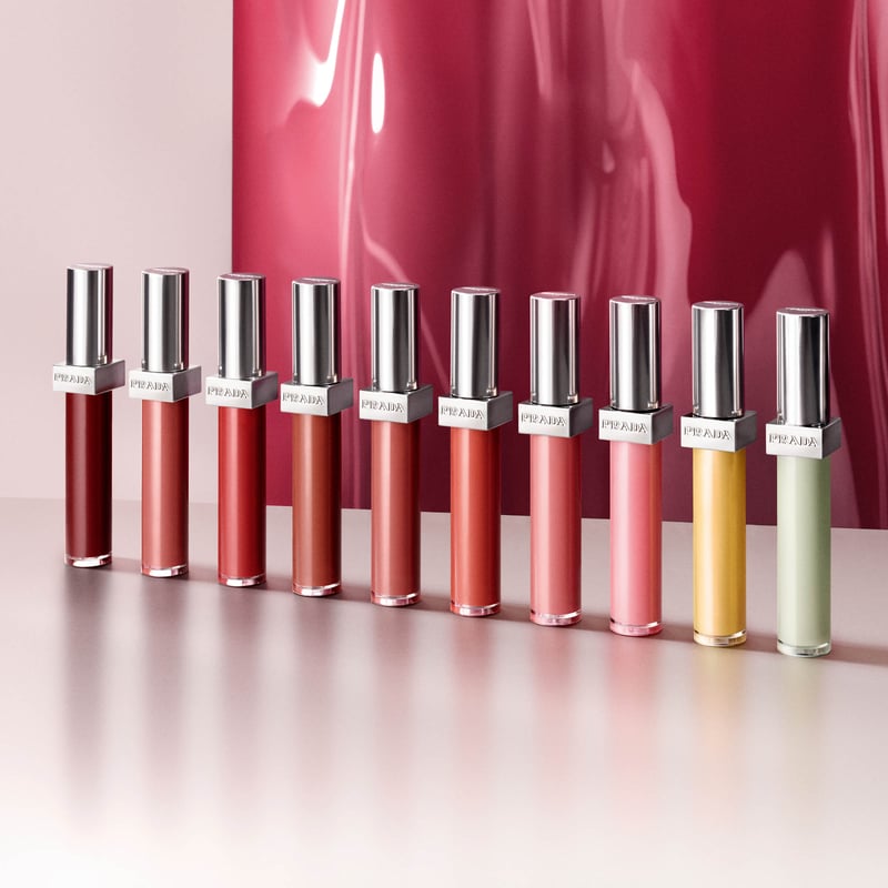 深みのあるバーガンディから洗練されたナチュラルピンクまで、さまざまな肌タイプになじみやすいカラーシェードを8色揃え、重ね付けでも単色使いでも使用できる。また、プラダ バームを象徴する「グリーン バーム」と「バナナバーム」にインスパイアされた2色も用意する。