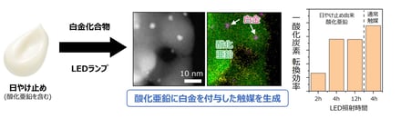 今後は、他の金属酸化物への展開や応用領域の拡張も視野に入れながら、実際に使われなくなった日やけ止めなどの化粧品から触媒を生成するプロセスの実証実験を実施し、実用化に向けた研究開発を加速させるとした。