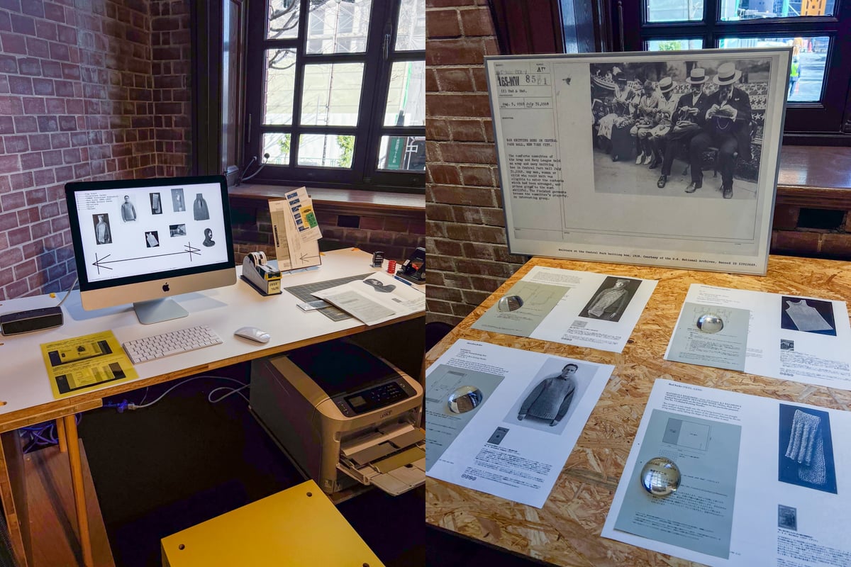 東京・有楽町を拠点とするアートを軸としたイノベーション創出プラットフォーム「YAU(ヤウ、有楽町アートアーバニズム)」の公募企画の一環として行われる今回のプロジェクト。リサーチをベースにした第1弾の展示を皮切りに、2月と3月にはそれぞれ異なるワークショップを開催する。第2弾では、YAUのスタジオを舞台にセーターを解く実演や体験のワークショップを、第3弾では1918年に戦時下のニューヨーク・セントラルパークで行われた「Knitting Bee」を現代に再現する、有楽町の街中の公共空間で「みんなで編む」ワークショップが計画されている。