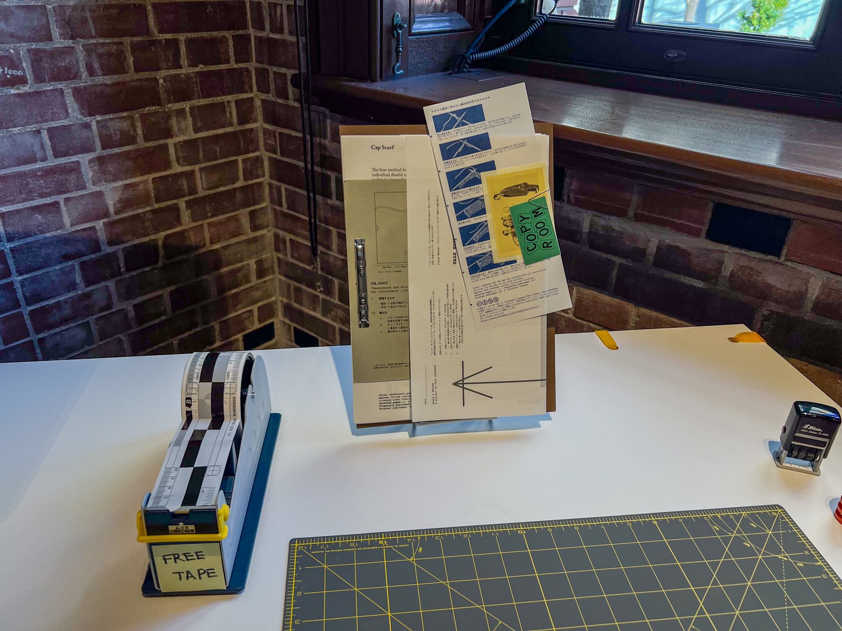 現在、三菱一号館美術館 Espace 1894で開催中の展示「ニッツ・アンド・レビュー/コピールーム」の元になったのは、彼らがこれまでに行ってきた個人的なアーカイヴ・リサーチだ。「昔はユーザー自身が手を動かして服作りをしていた実践の例があるのではないか」との考えから、インターネット上のアーカイヴや戦争博物館などで戦時中の編み図の資料を探し、その実物をeBayなどを通して収集してきたという。