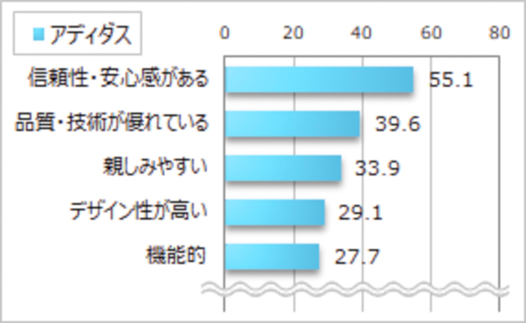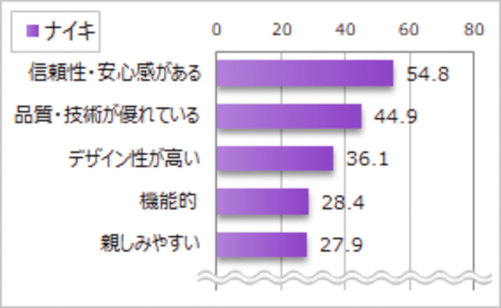 また、その他のブランドに着目すると、「ミズノ」では「信頼性・安心感がある」が7割強と他の層と比べて高い割合を示しています。(※グラフの続きなど、より詳しいデータは記事末記載の「調査結果詳細」でご覧いただけます)