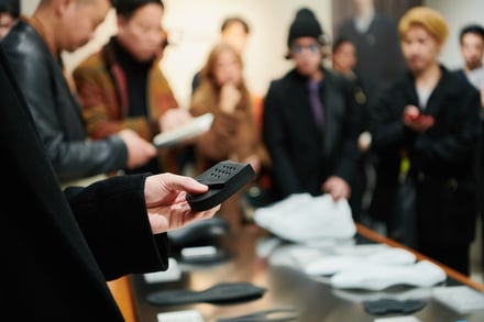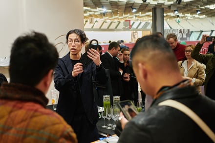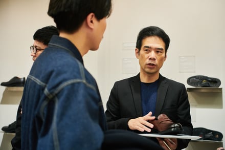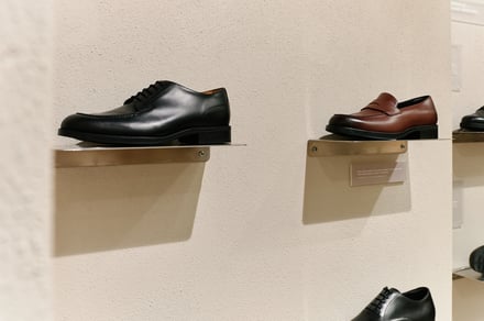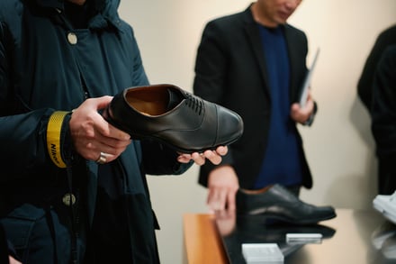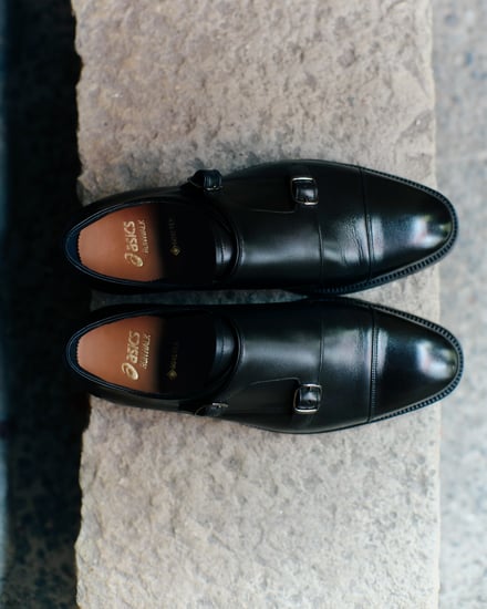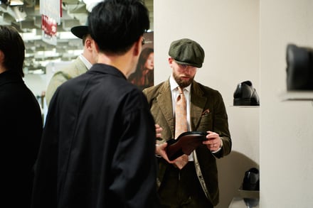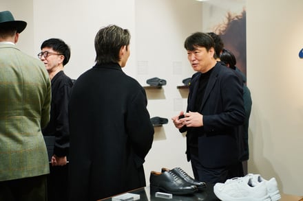 また会場におけるクリエイティブでは、ファッションのカジュアル化が進む現代に合わせた新たなスタイルを提案。アシックス商事の広報は、「ファッションのカジュアル化が進んでいますが、その中でもドレスシーンでドレスシューズを合わせる着こなしは存在します。そこで今回は、最もフォーマルな内羽根ストレートチップのドレスシューズを履きながらも、スタイリング全体でカジュアル感を出すといった、新しいスタイル提案を意識したクリエイティブを制作しました」とし、会場では映像上映のやパンフレットの配布を行い、ブランドの方向性や世界観を訴求した。