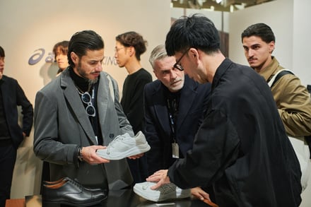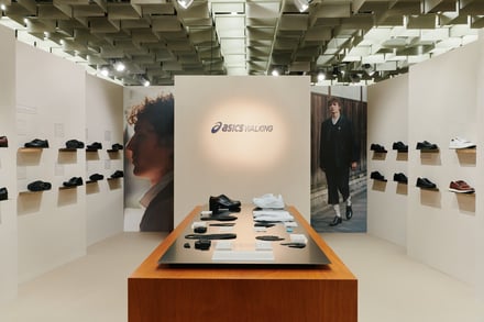 アシックスウォーキングは1983年に誕生。「健康と豊かな感性を持った人間性の回復」を理念に掲げ、アシックスの創業哲学「健全な身体に健全な精神があれかし(Anima Sana In Corpore Sano)」を具現化したウォーキングシューズを販売している。第109回のピッティでは、ファッション感度の高いグローバル市場に向けて、科学的アプローチに基づく履き心地とデザイン性を兼ね備えたブランドの世界観を発信した。