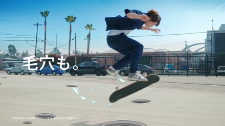 新CMに出演した堀米雄斗は新商品に関して、「スキンケアもUVケアもどっちも1本で解決できるのが楽でありがたいです。サラッとした塗り心地で、練習や試合で外にいるときのベタつきがちな肌にも使いやすそうなので、毎日使いたいです」とコメントした。